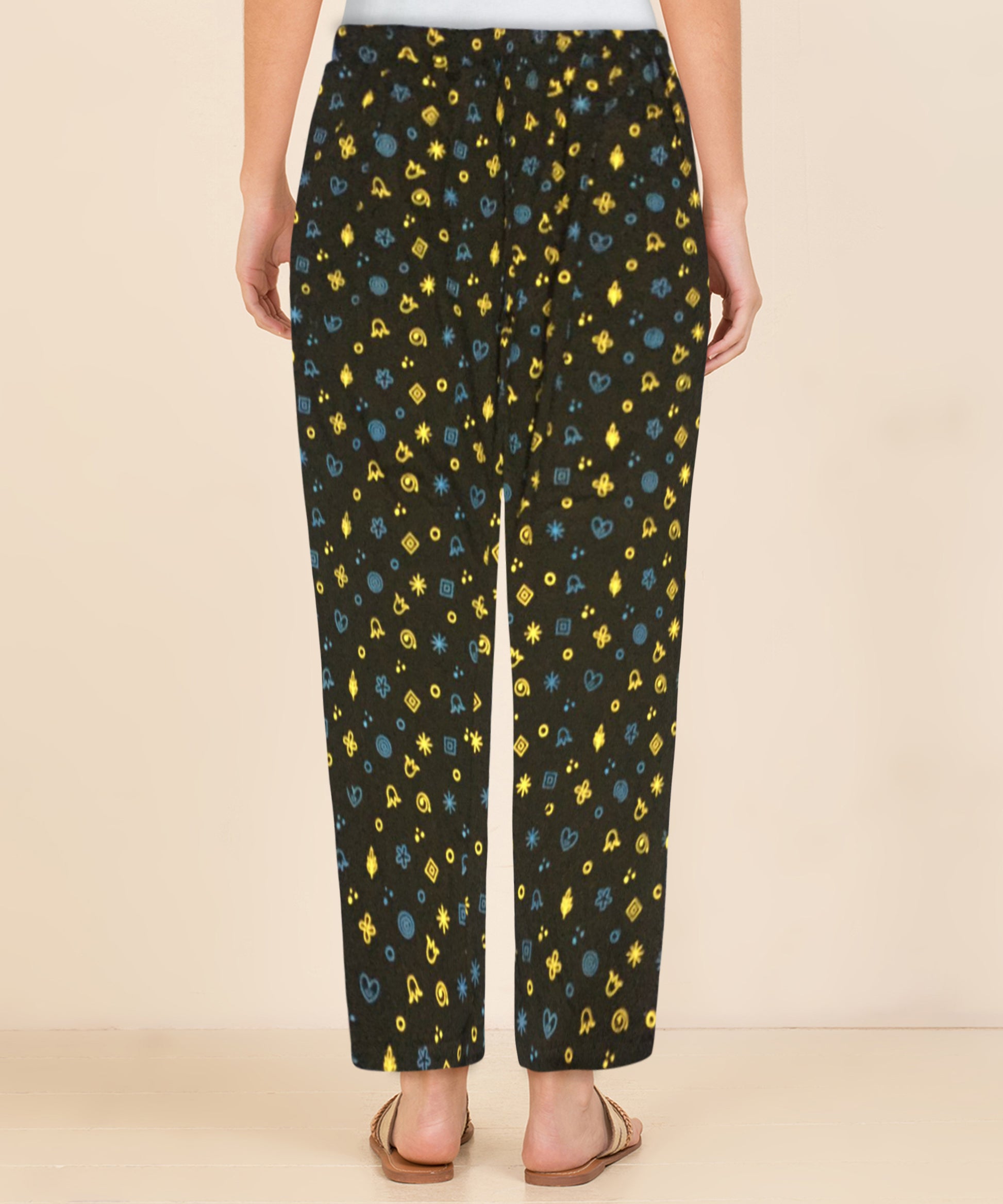 Afra Women Printed Pyjama Pants | OE Cloth | Nightwear & Lounge Wear | Comfortable Elastic Waist(Black)