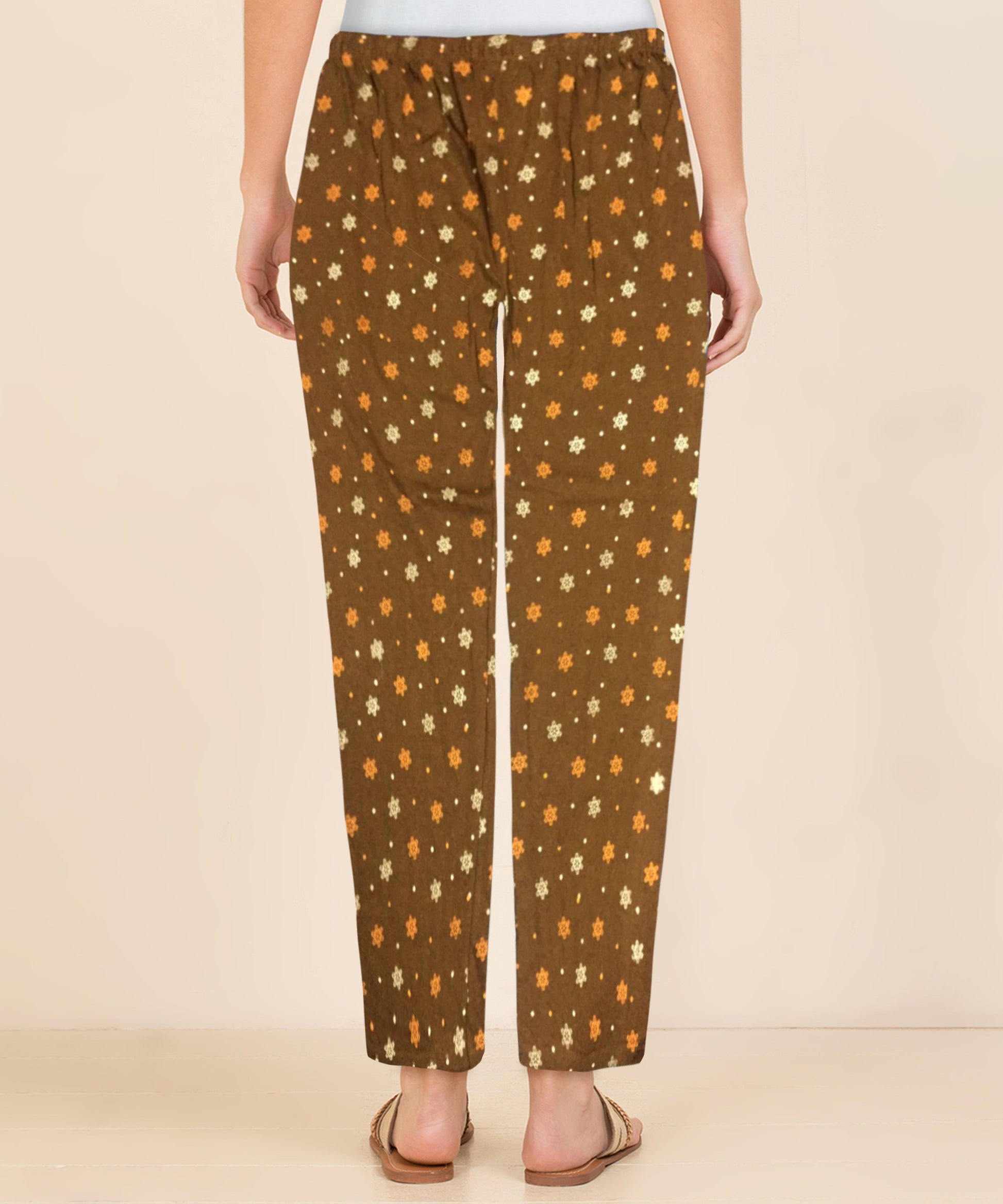 Afra Women Printed Pyjama Pants | OE Cloth | Nightwear & Lounge Wear | Comfortable Elastic Waist(Brown)